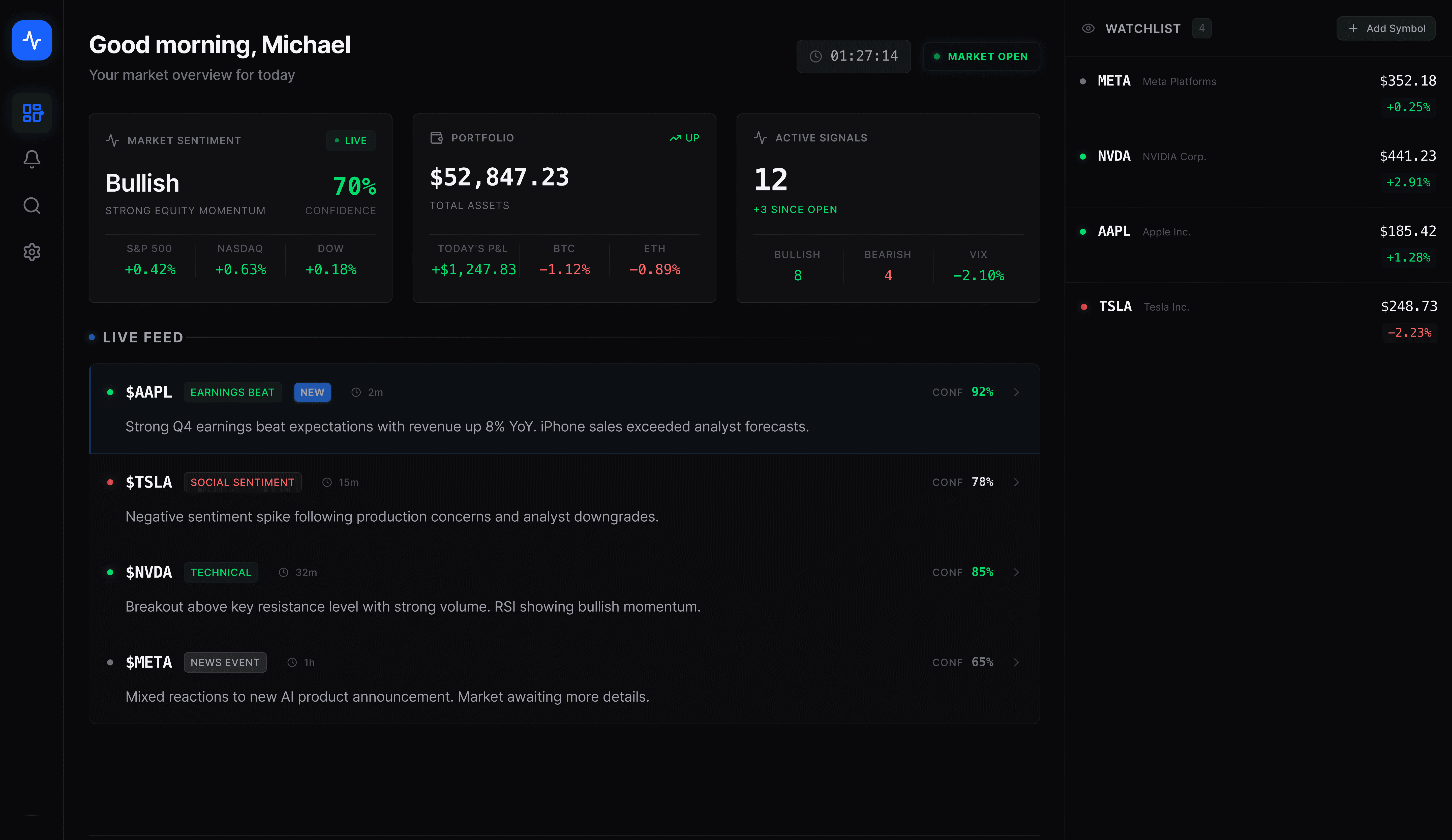 AI powered trading dashboard prototyped in hours, unifying alerts, sentiment, and execution